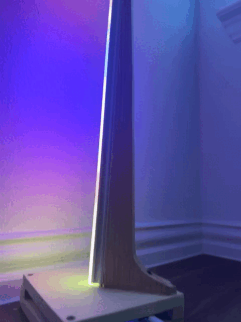 The construction of this corner lamp combines 2 of my very passionate hobbies. Woodworking and microcontroller. The lamp frame was built using maple and poplar. The LED strip is controlled by ESP32 micro controller that is running WLED. This construction has very minimum customization to WLED where I created a a couple of flag patterns in the lights. Otherwise majority of the functionality is out of the box.
